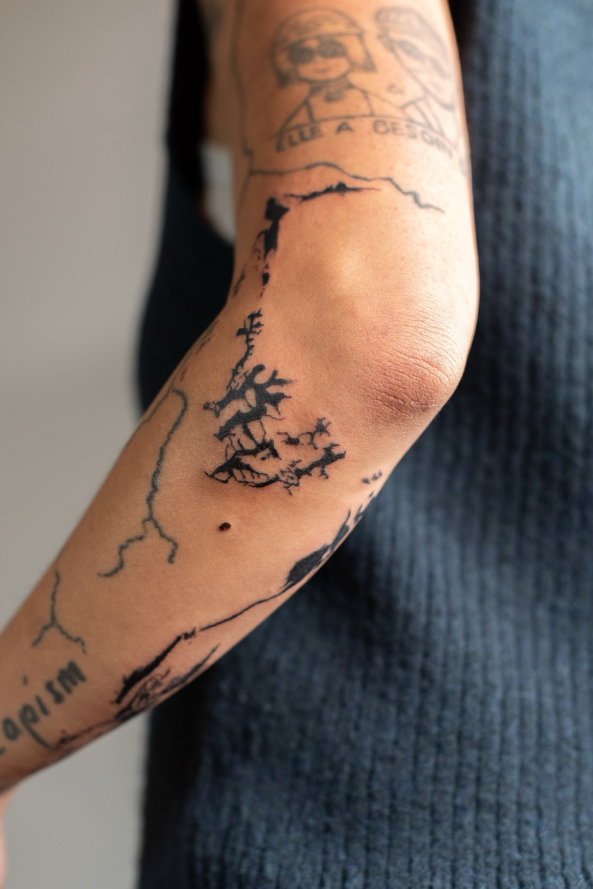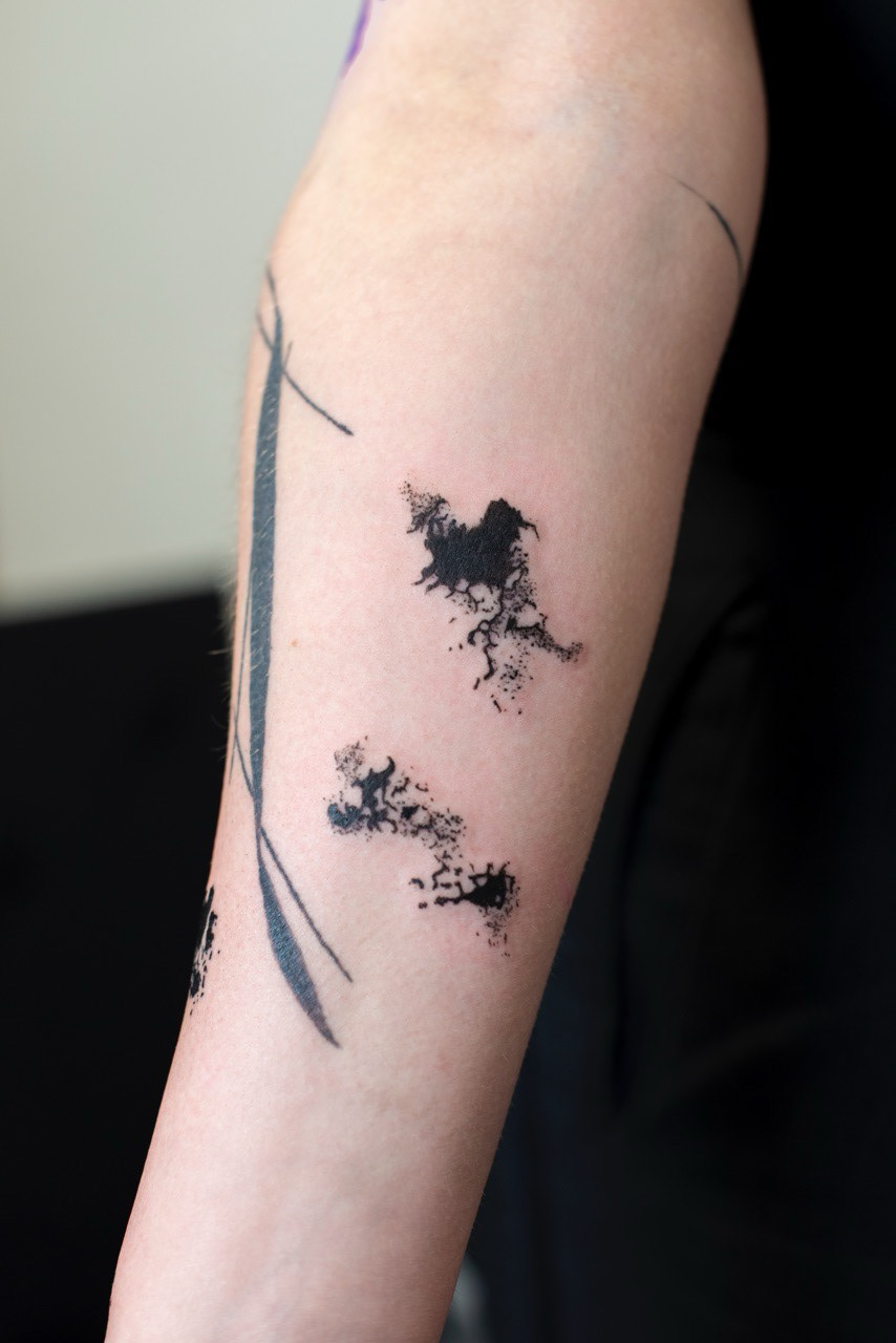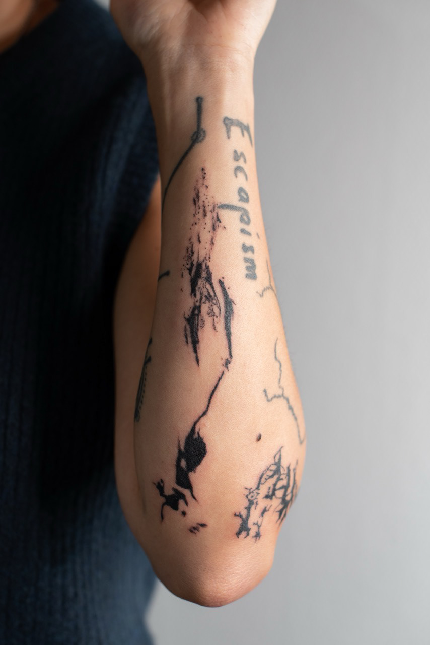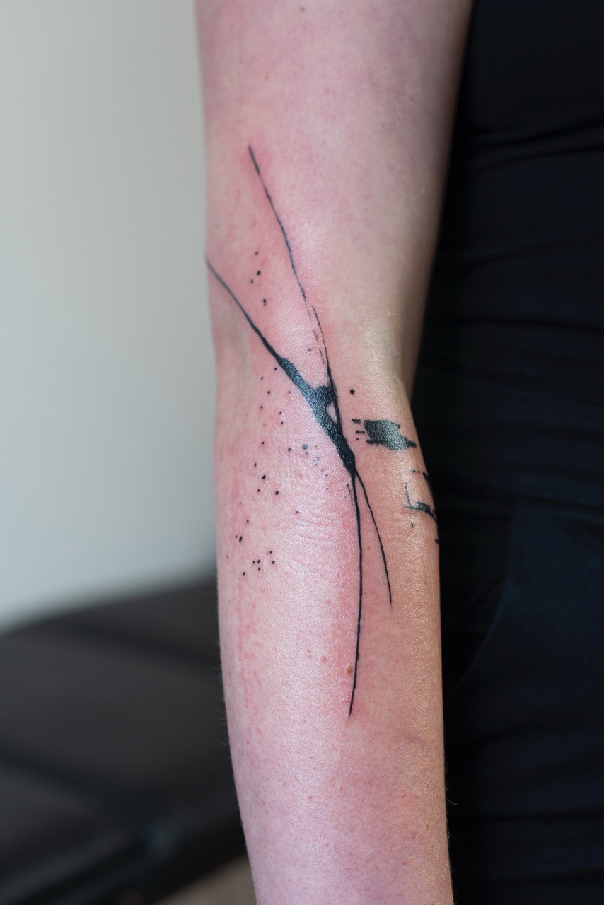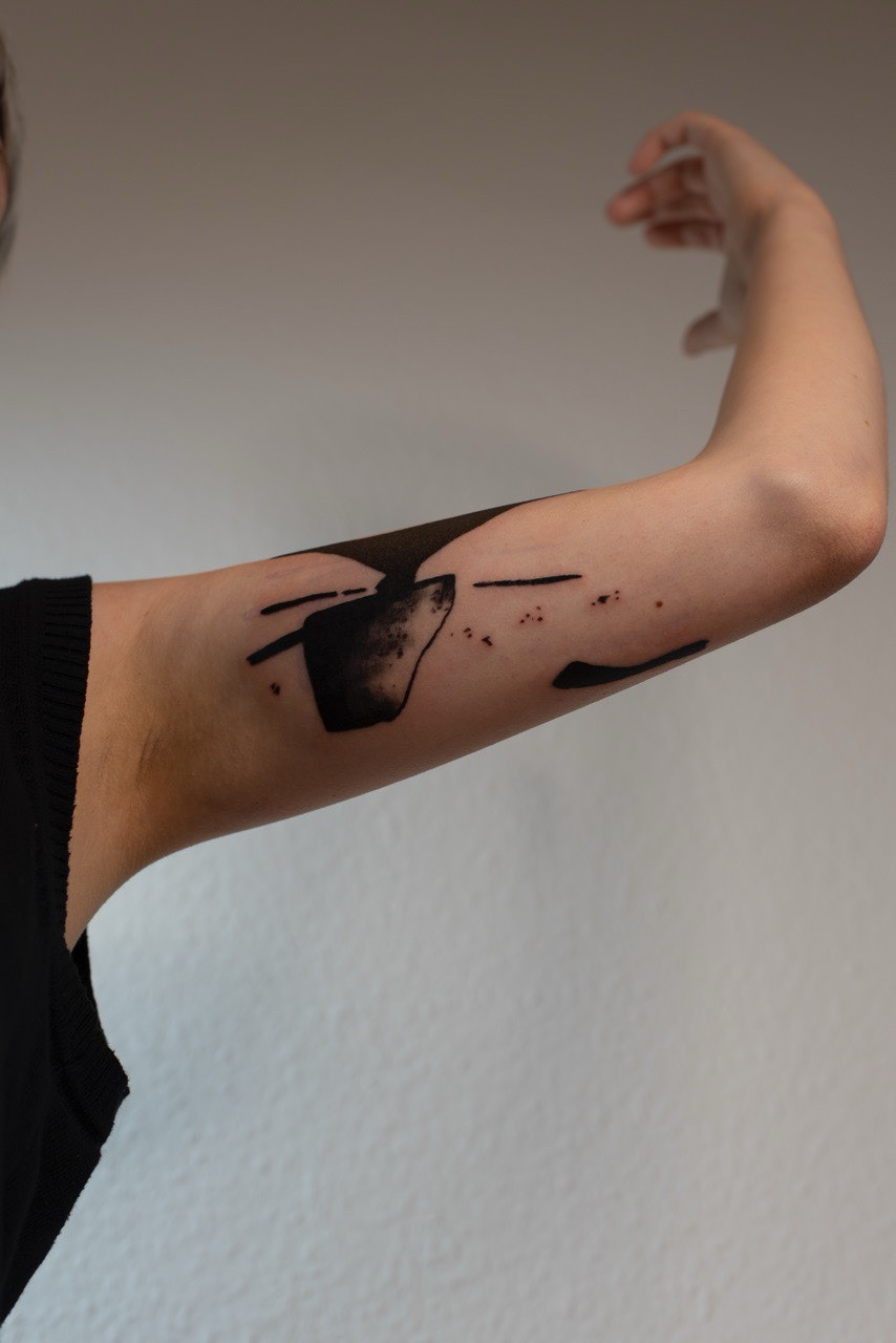 freehand tattoo based on elemnts of acrylic painting, 2023