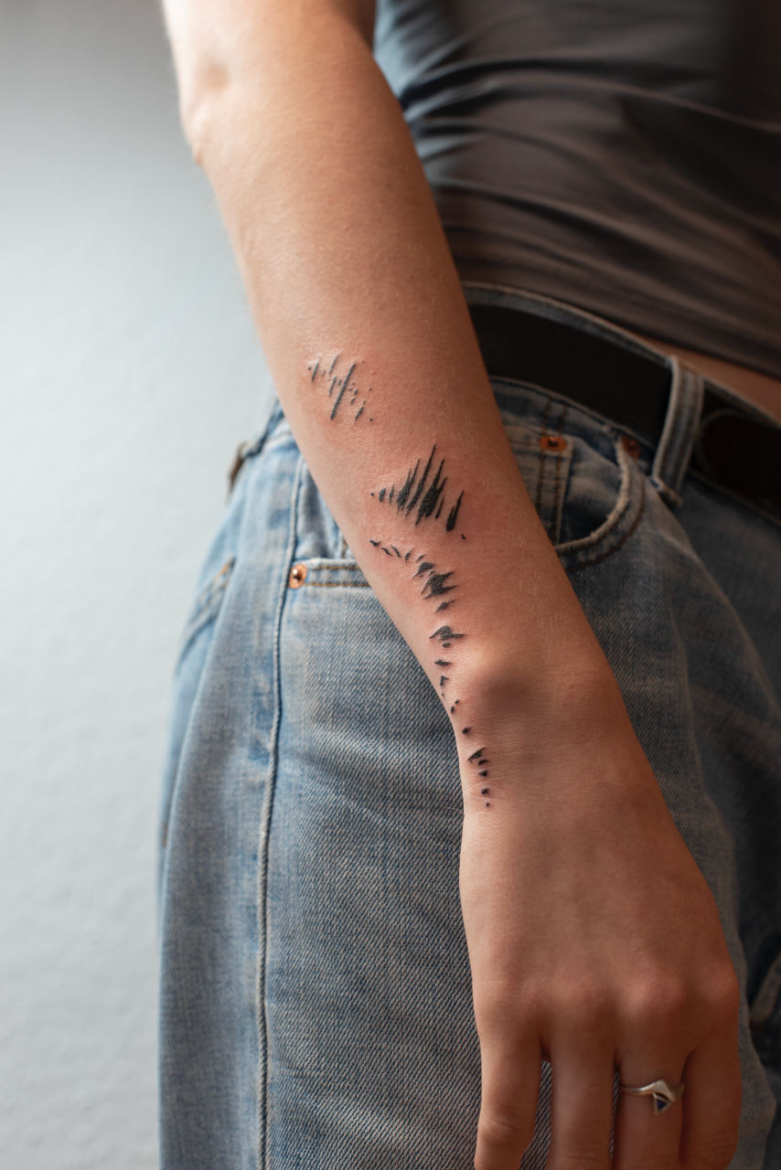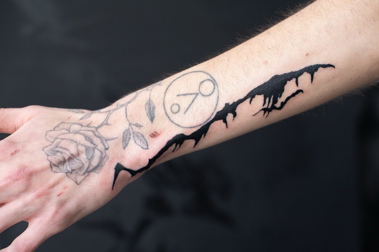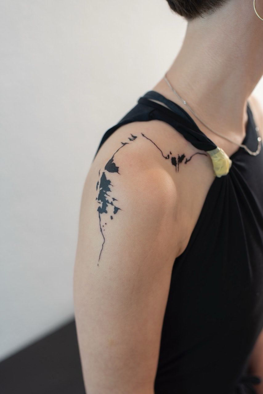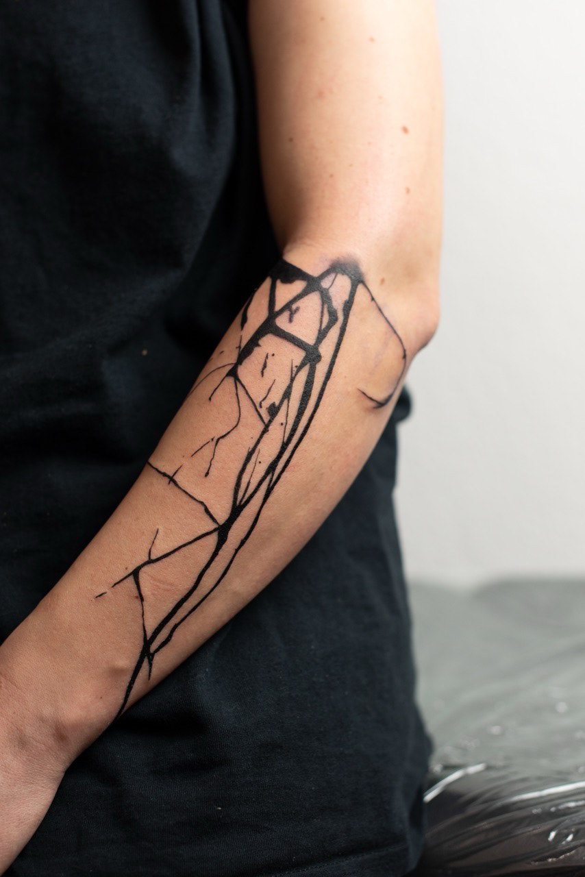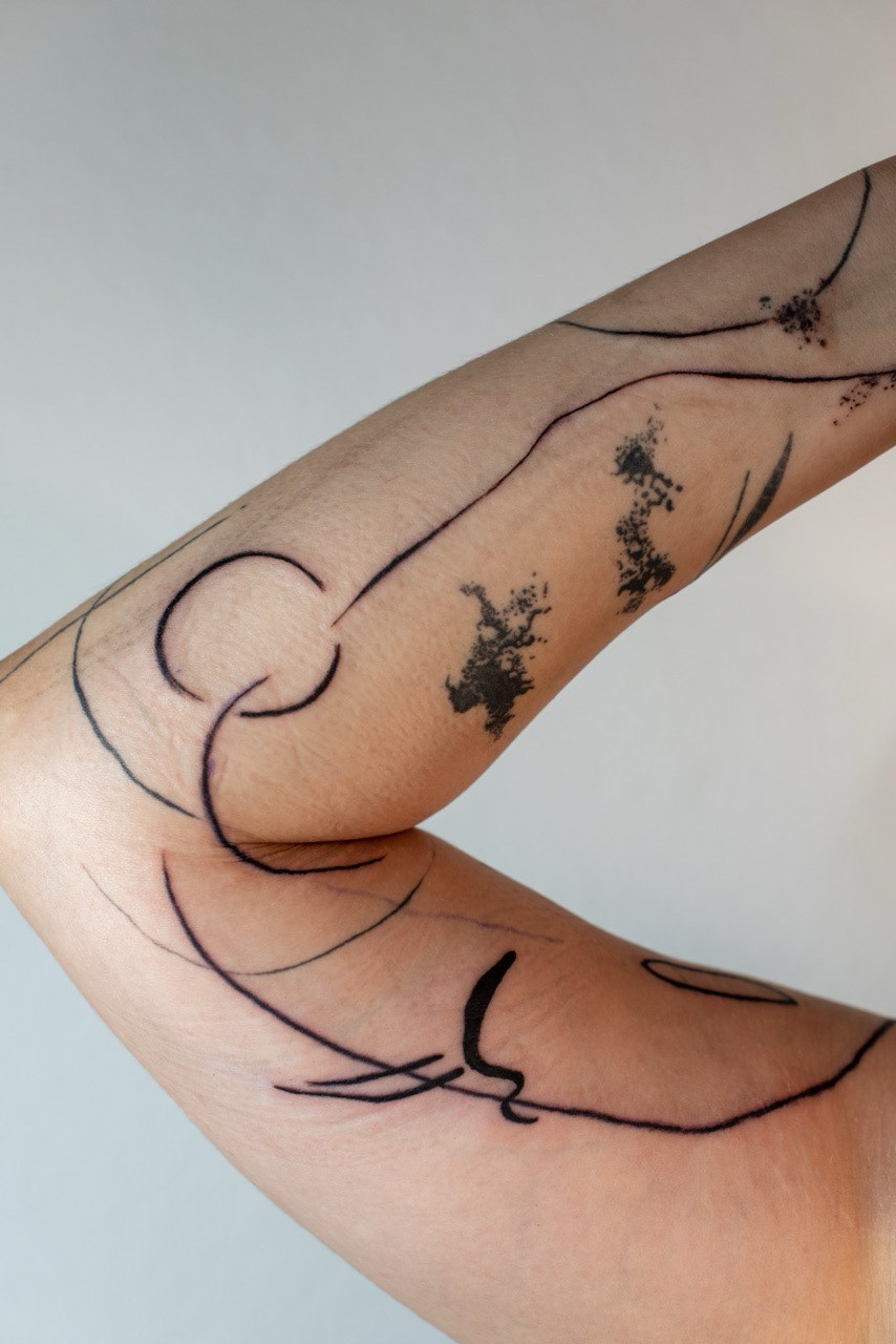 freehand tattoo based on elemnts of acrylic painting, 2023