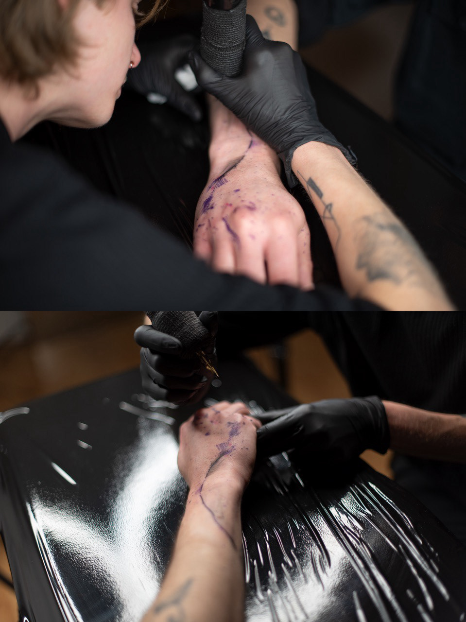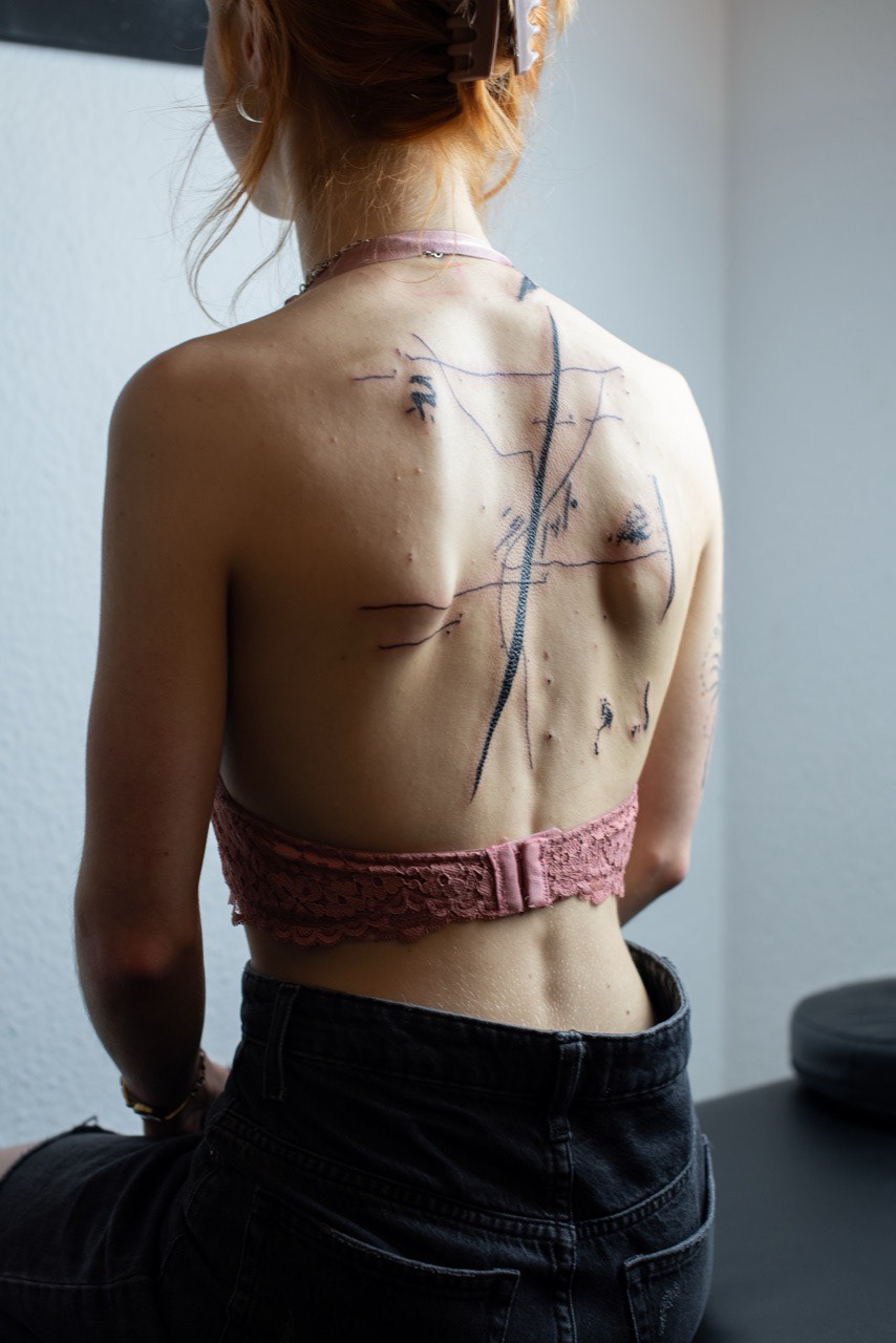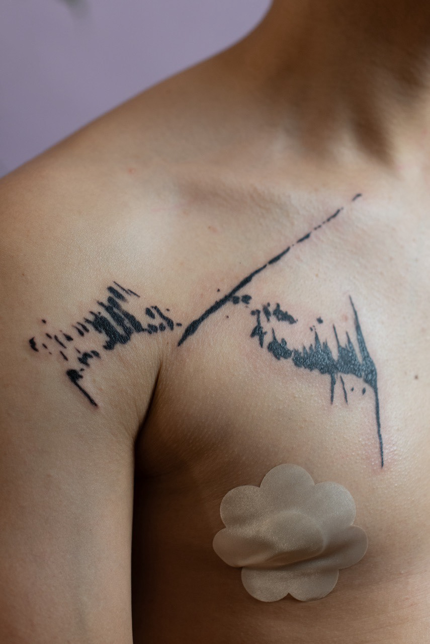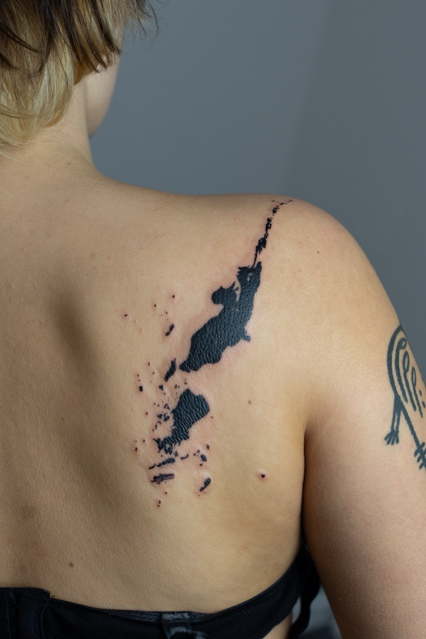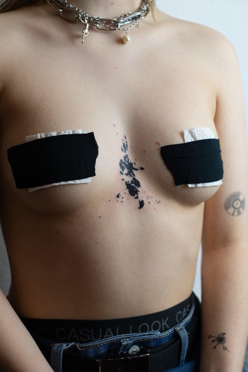 freehand tattoo based on elemnts of acrylic painting, 2023